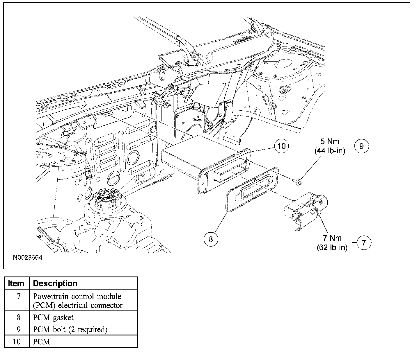 7. Disconnect the powertrain control module (PCM) electrical connector and remove the gasket.