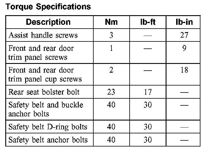 Torque Specifications: