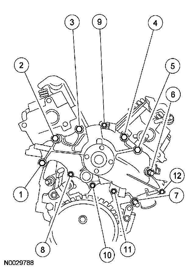 First pass: bolts 1-7 25 Nm (18 ft. lbs.)