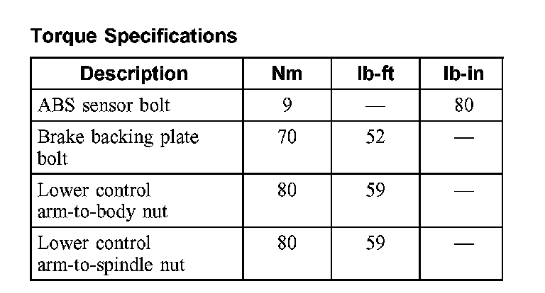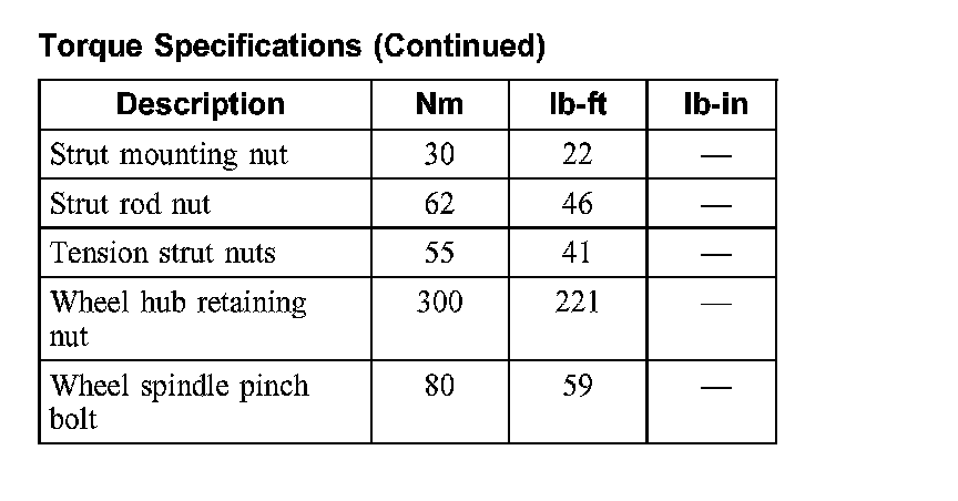 Torque Specifications:
