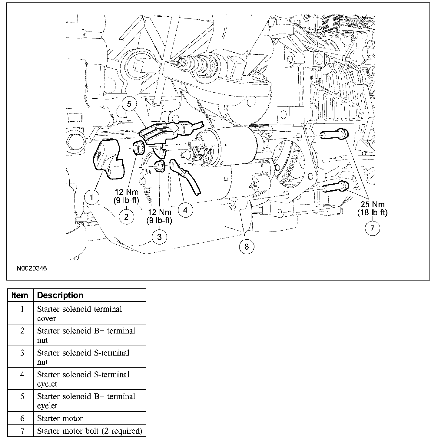 - When working in area of the starter motor, be careful to avoid touching hot exhaust components. Failure to follow these instructions can result in personal injury.