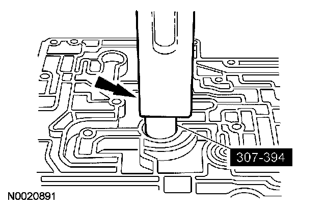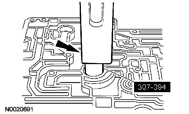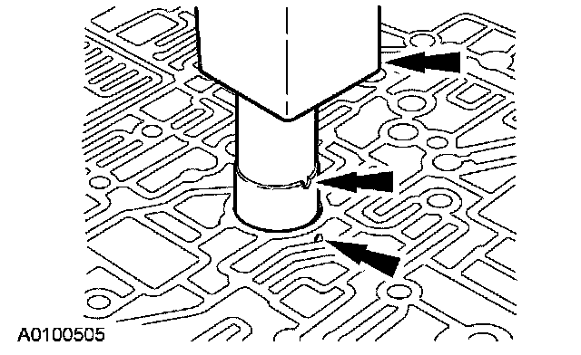 ^ Verify that the hole in the valve body sleeve aligns with the hole in the circuit passage.