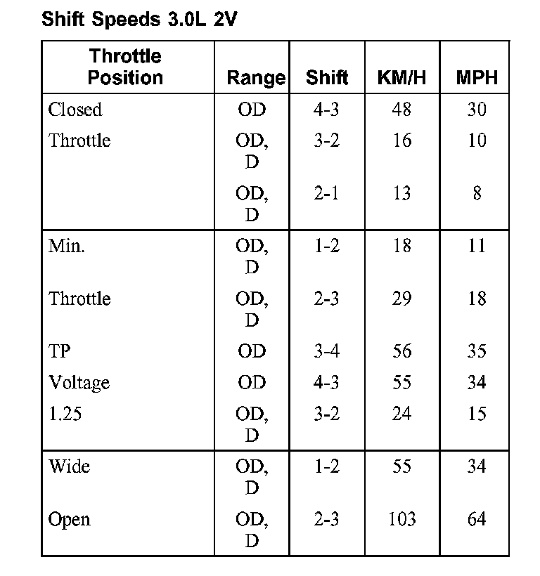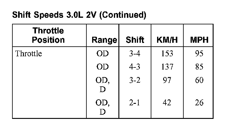 3. NOTE: Shift speed ranges are approximate for all applications. For specific applications (engine, axle ratio and application), refer to the Automatic Transmission Specification Issue available from Ford Customer Service Division.
