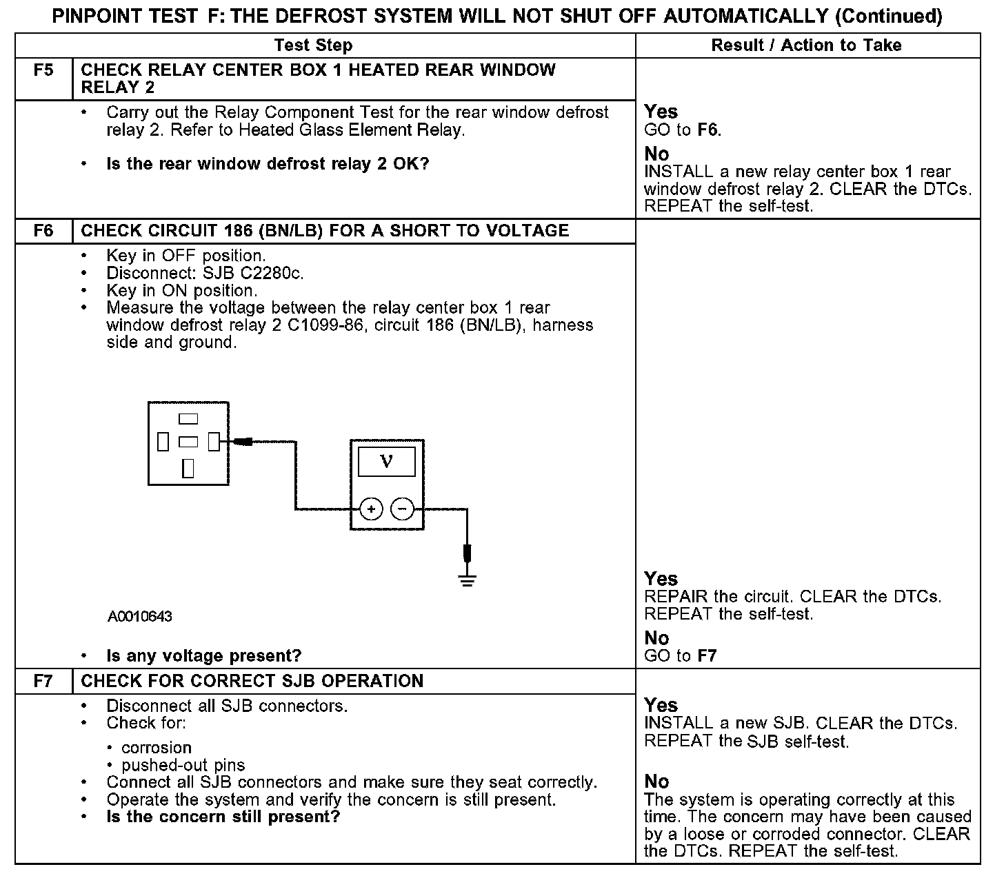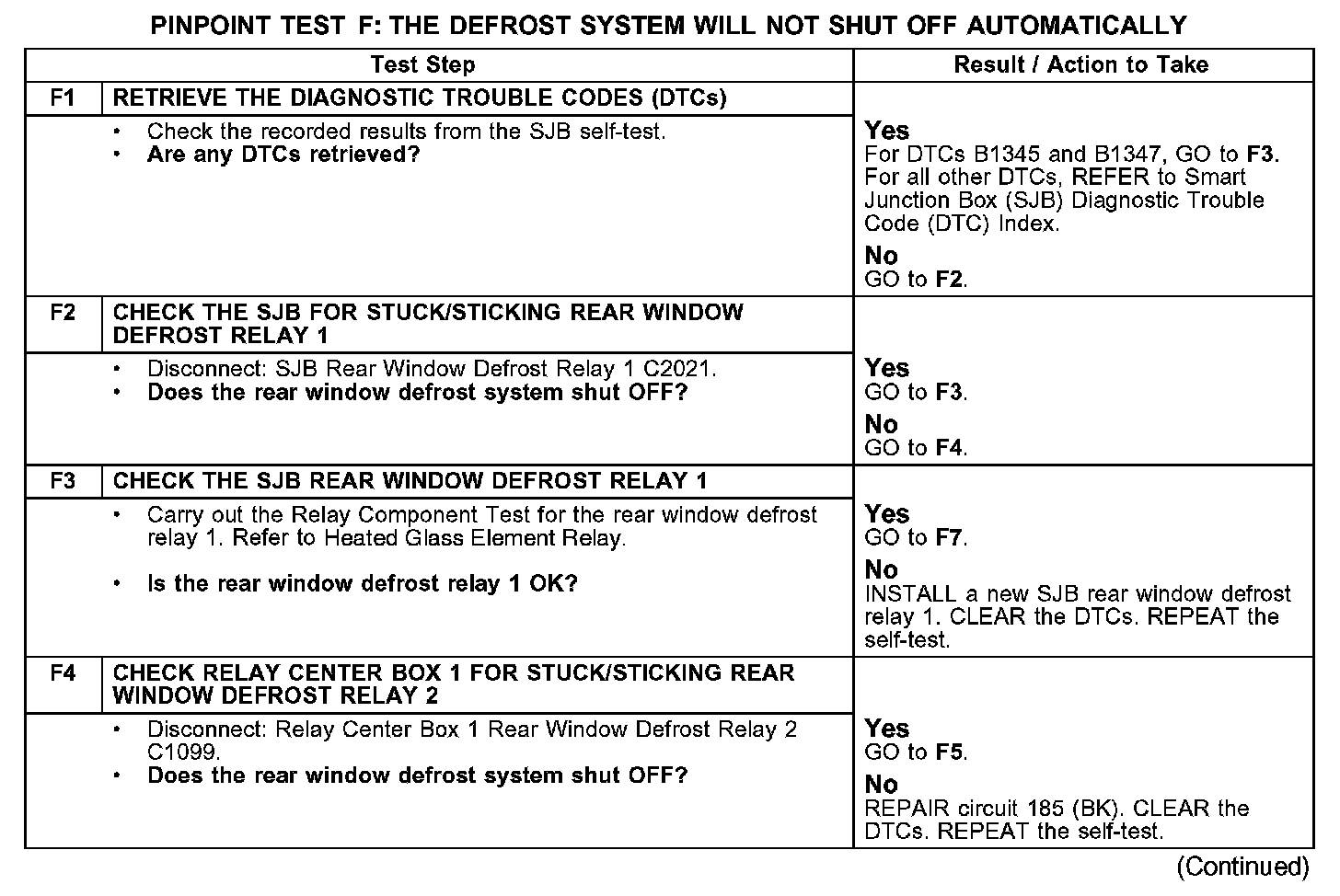 PINPOINT TEST F: THE DEFROST SYSTEM WILL NOT SHUT OFF AUTOMATICALLYF1-F4: