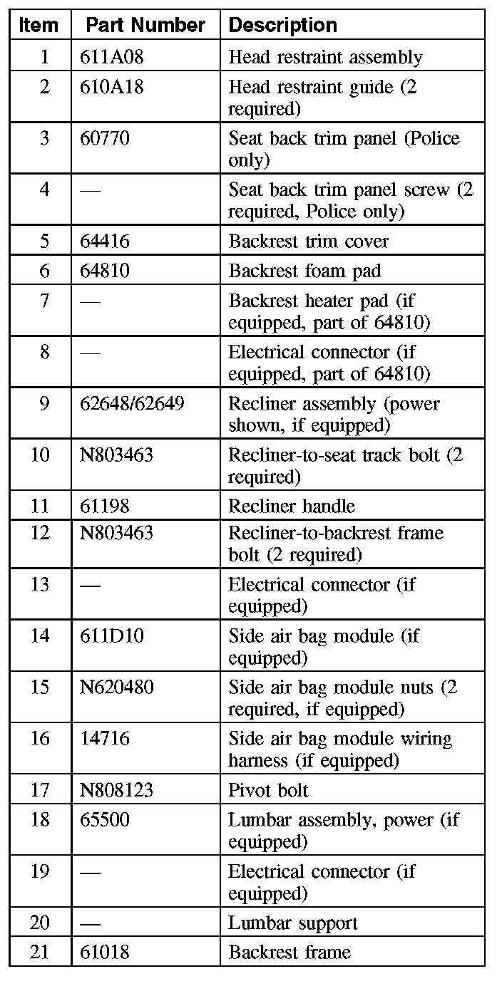 HEATED SEAT MODULEFront Seat Backrest (Part 1):