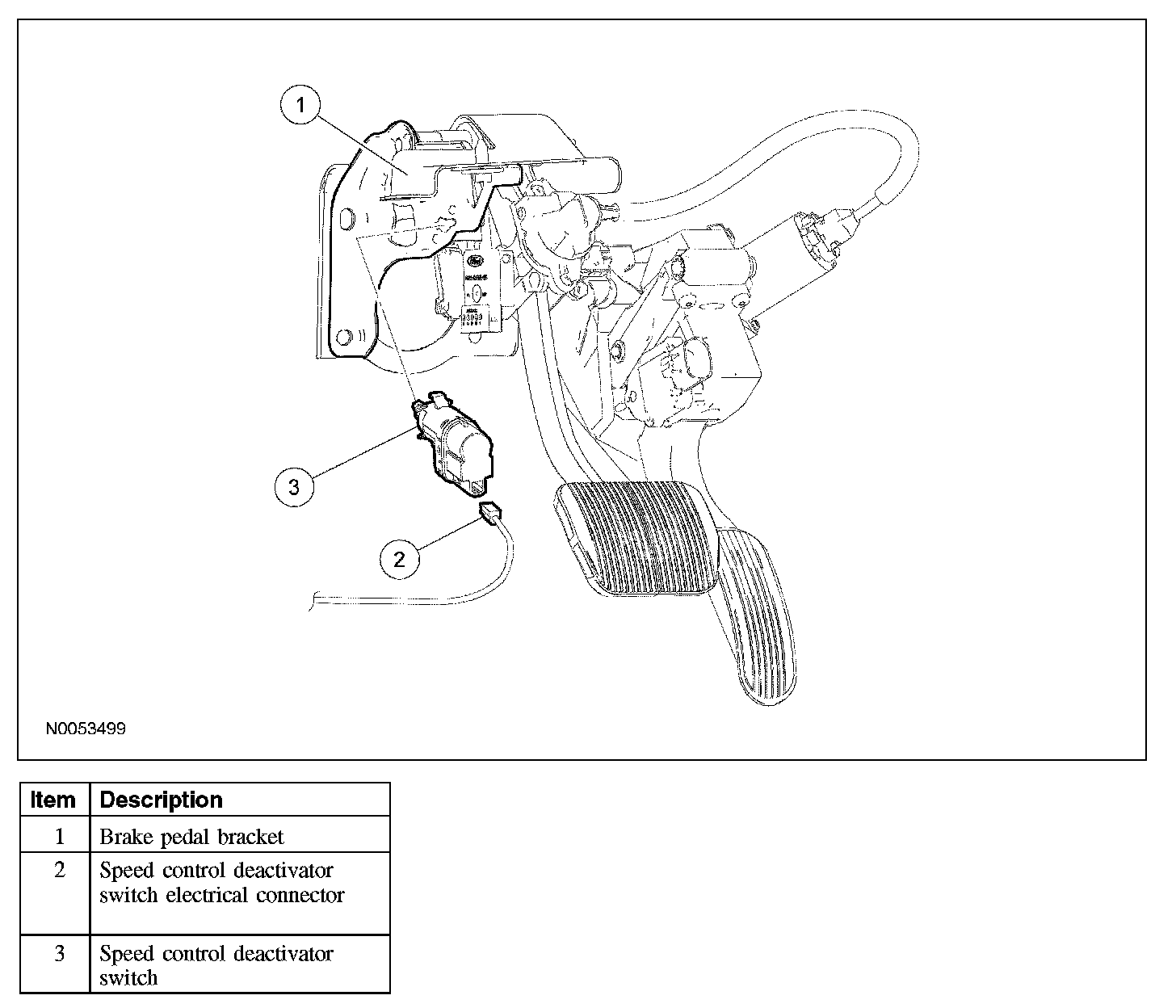 CAUTION: Do not press the pedal when removing or installing the speed control deactivator switch, as the switch will be damaged.