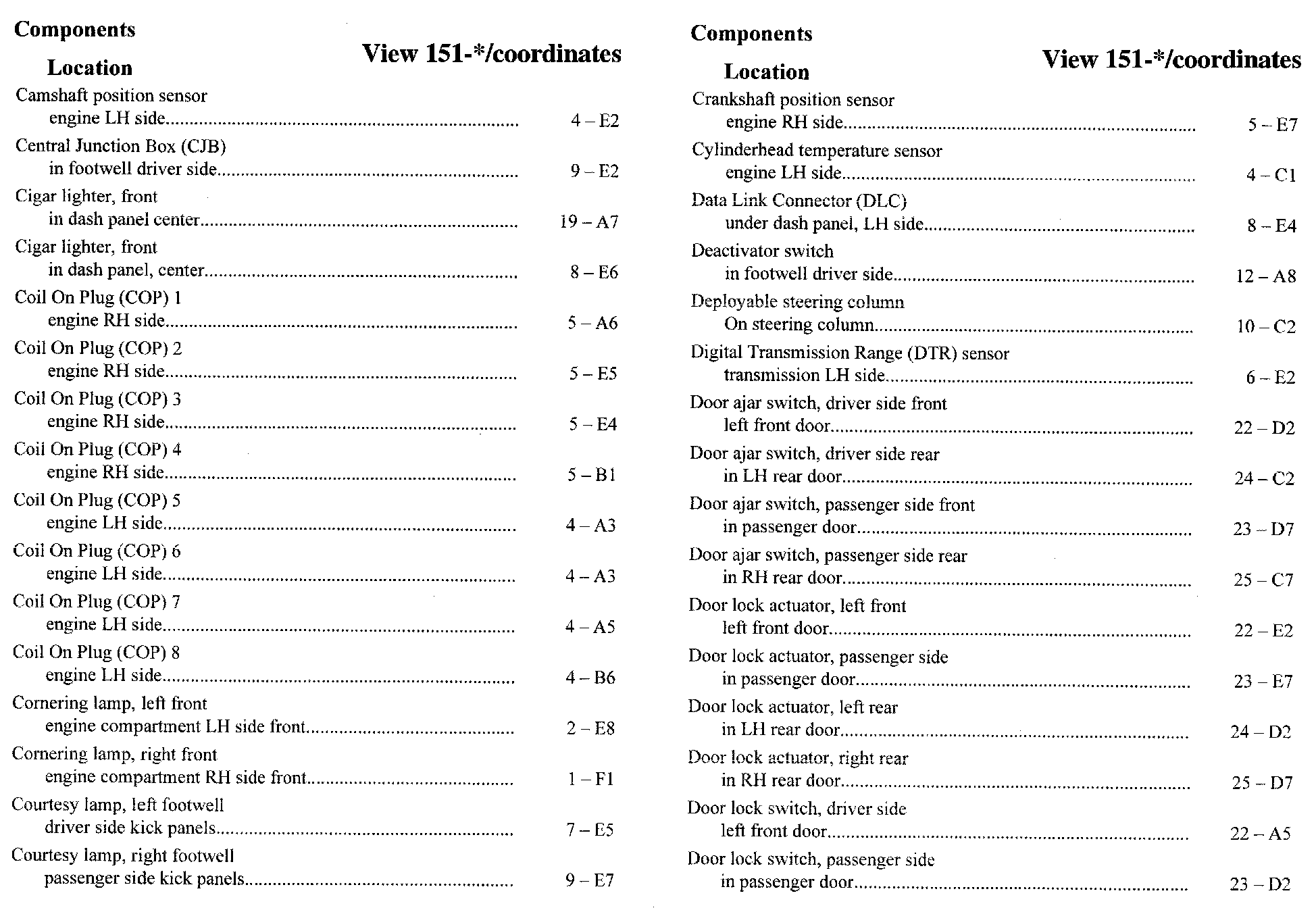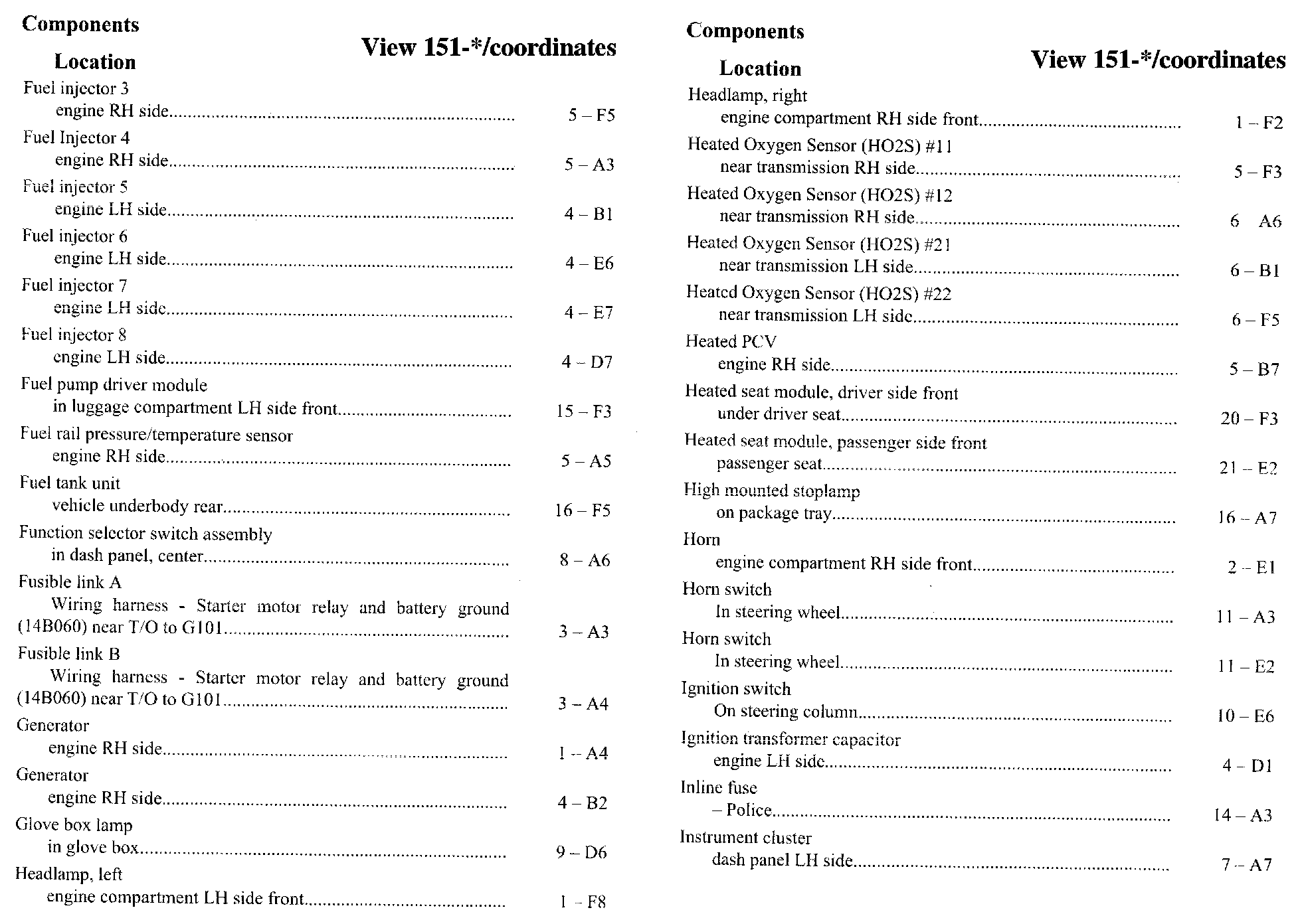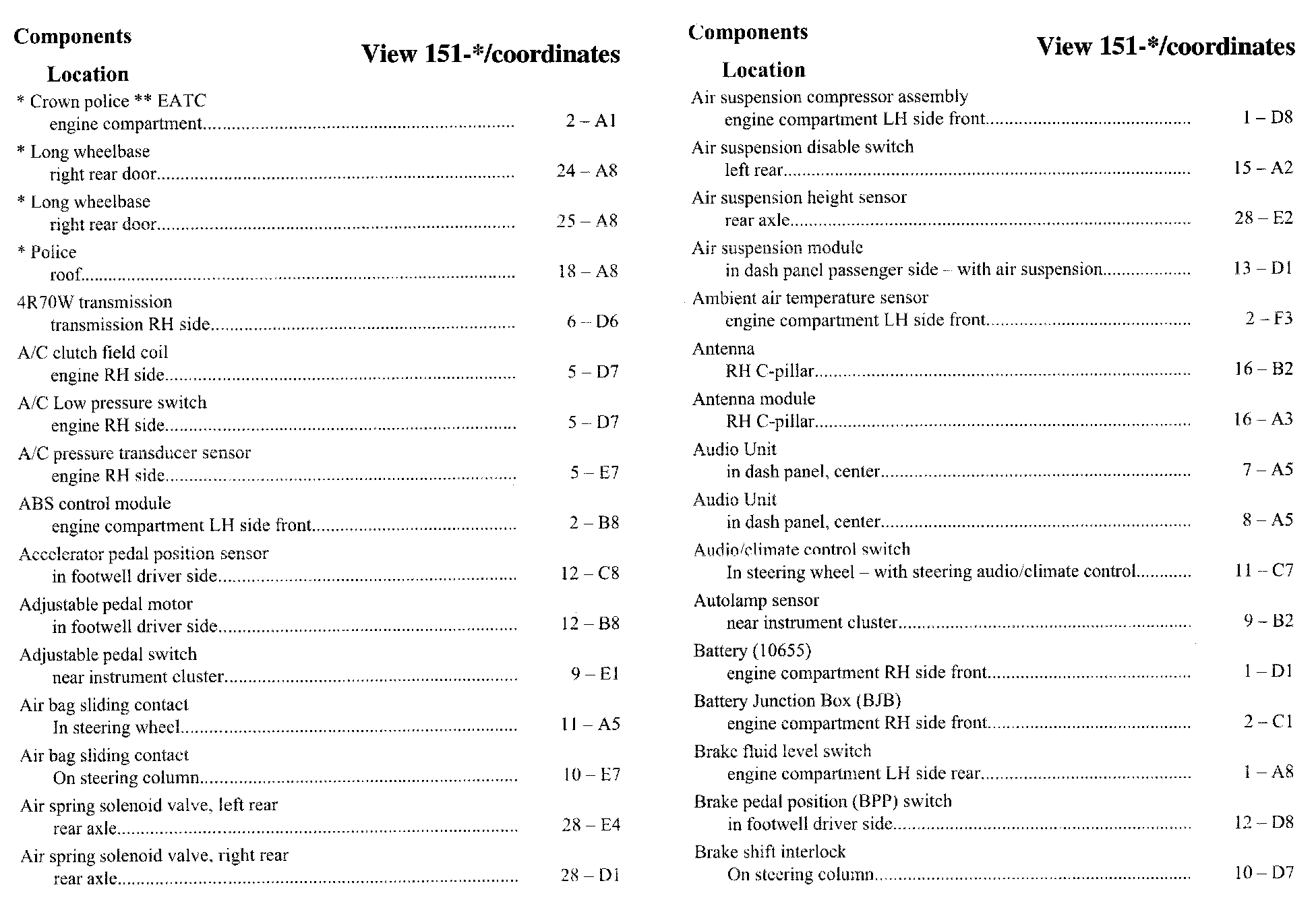 PLEASE NOTE: If a link on the Component Location Index to a View is not provided, that means that the Component and/or View in question does NOT apply to the vehicle model selected.
