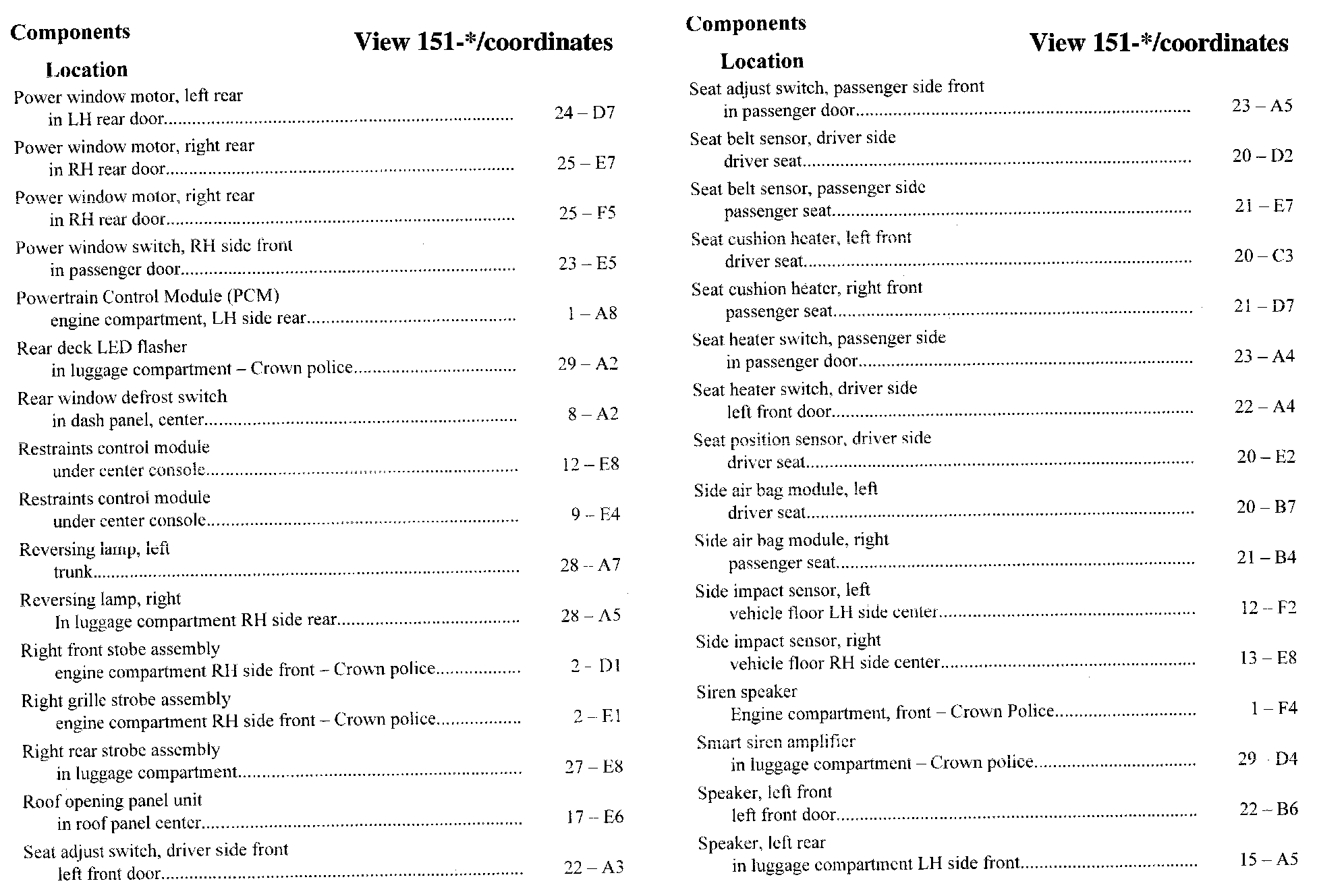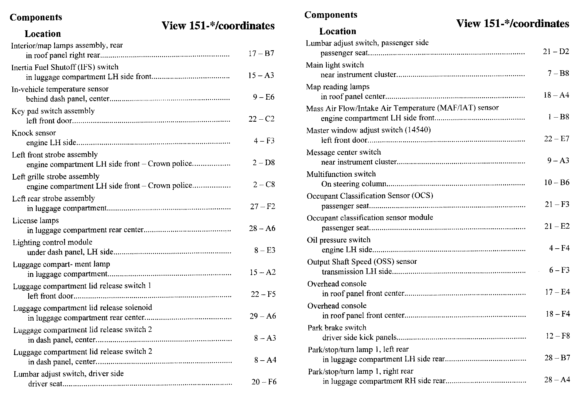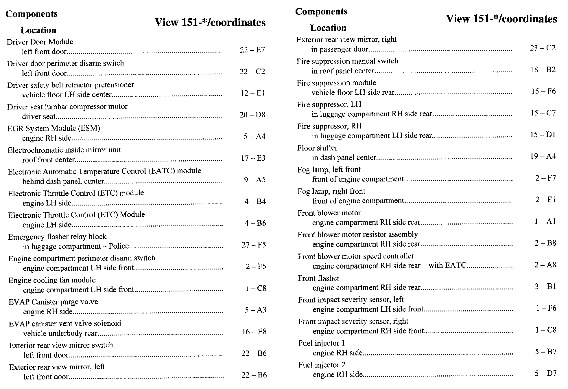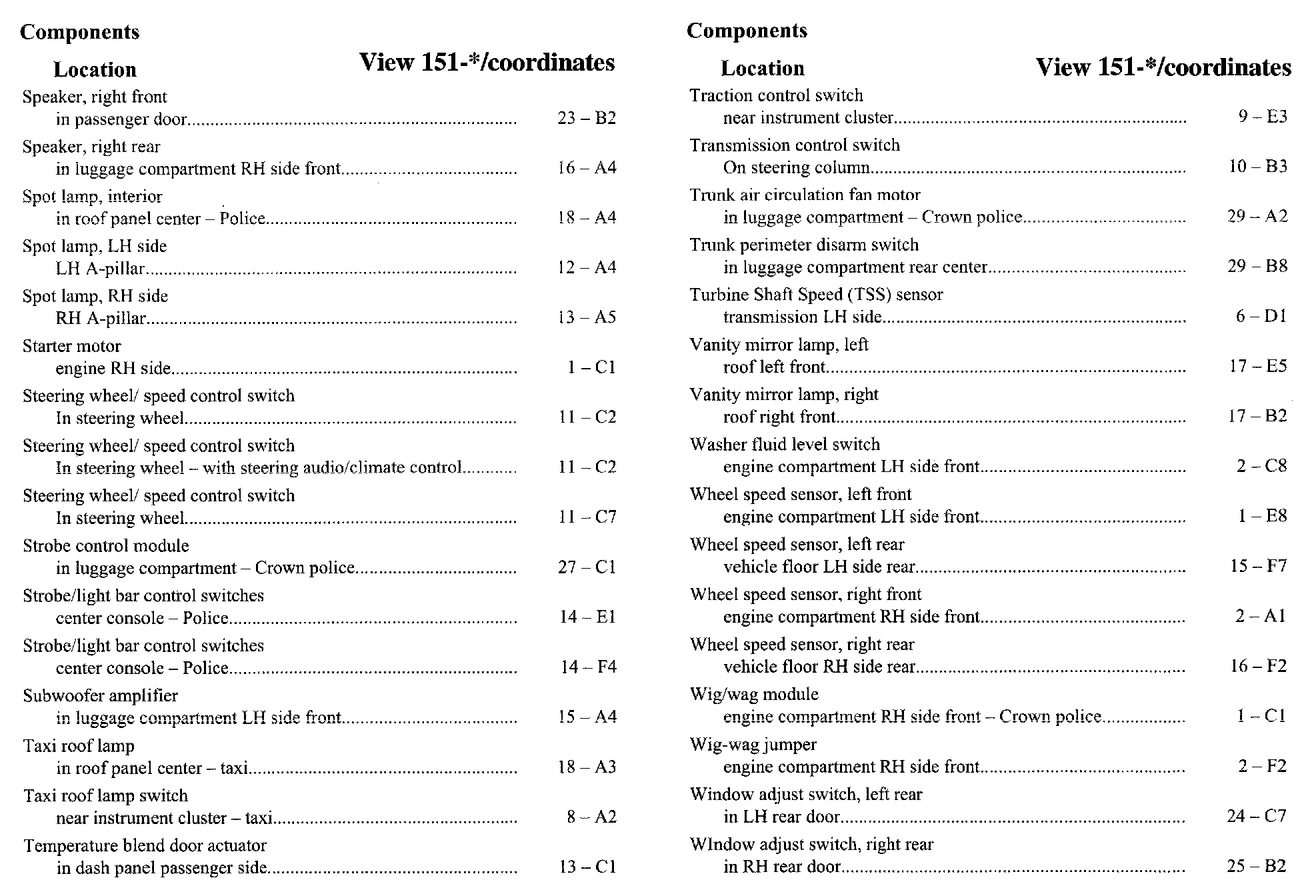 PLEASE NOTE: If a link on the Component Location Index to a View is not provided, that means that the Component and/or View in question does NOT apply to the vehicle model selected.