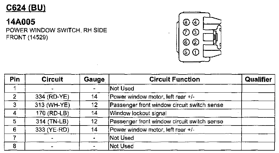 Power Window Switch, RH Side Front