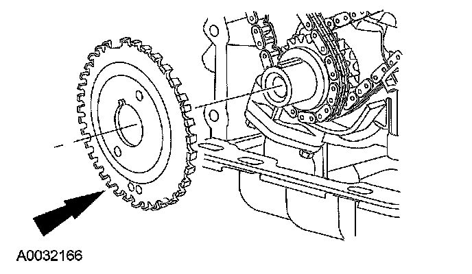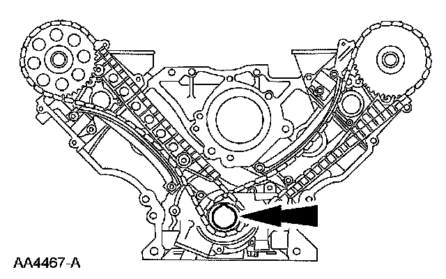 ^ Remove the RH timing chain from the crankshaft sprocket.