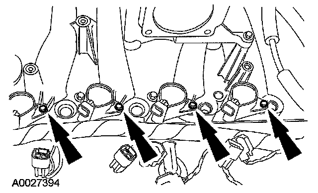 9. Install the camshaft sprockets and new bolts. Tighten the bolts in 2 stages.