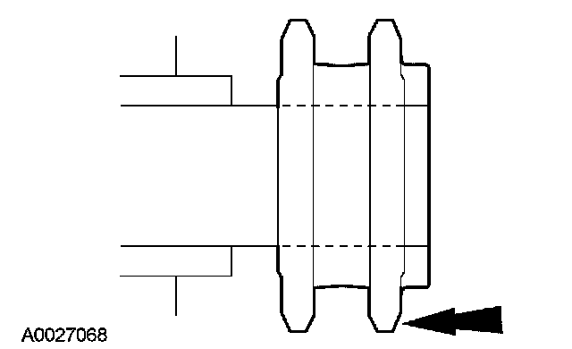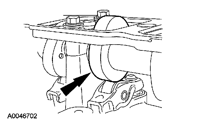 5. CAUTION: If one or both tensioner mounting bolts are loosened or removed, the tensioner-sealing bead must be inspected for seal integrity. Any cracks, tears, cuts or separation from the tensioner body or permanent compression of the seal bead, will require replacement of the tensioner.