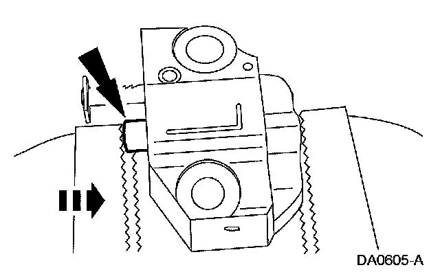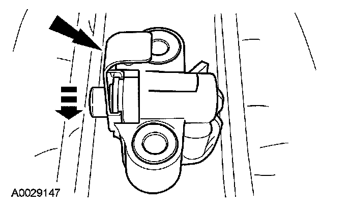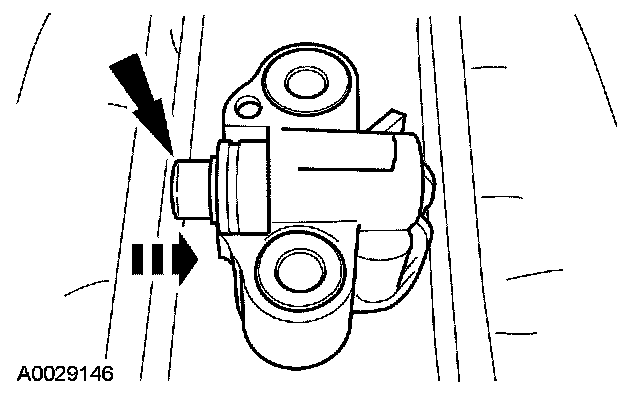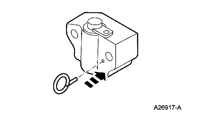 4. Install a paper clip into the hole of each tensioner housing to hold the ratchet assembly and plunger in during installation.