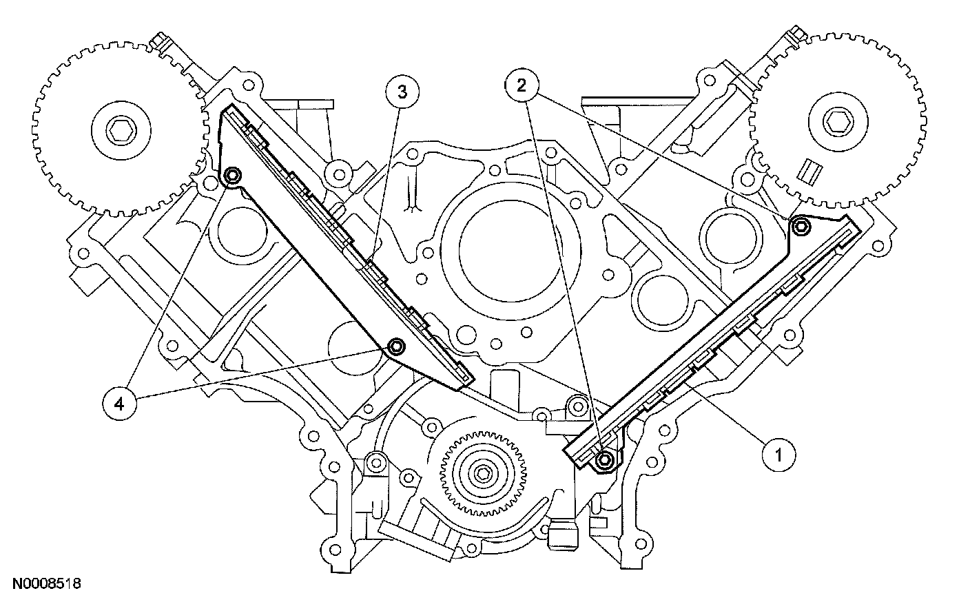 1. CAUTION: Timing chain procedure must be followed exactly or damage to valves and pistons will result.