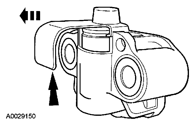 16. NOTE: The LH timing chain tensioner arm has a bump near the dowel hole for identification.