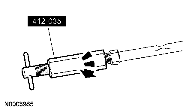 4. If the evaporator core orifice is intact, engage the special tool. Hold the T-handle stationary while rotating the tool body to remove the evaporator core orifice.