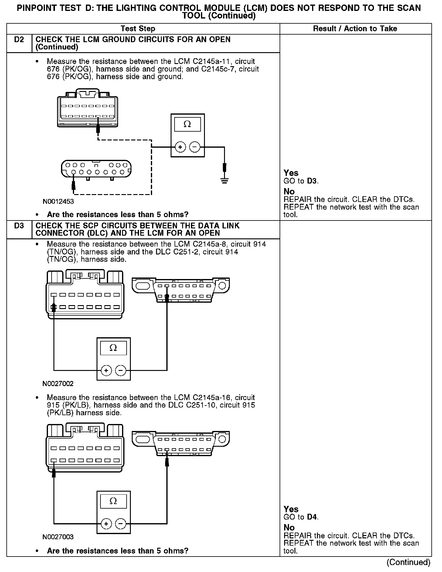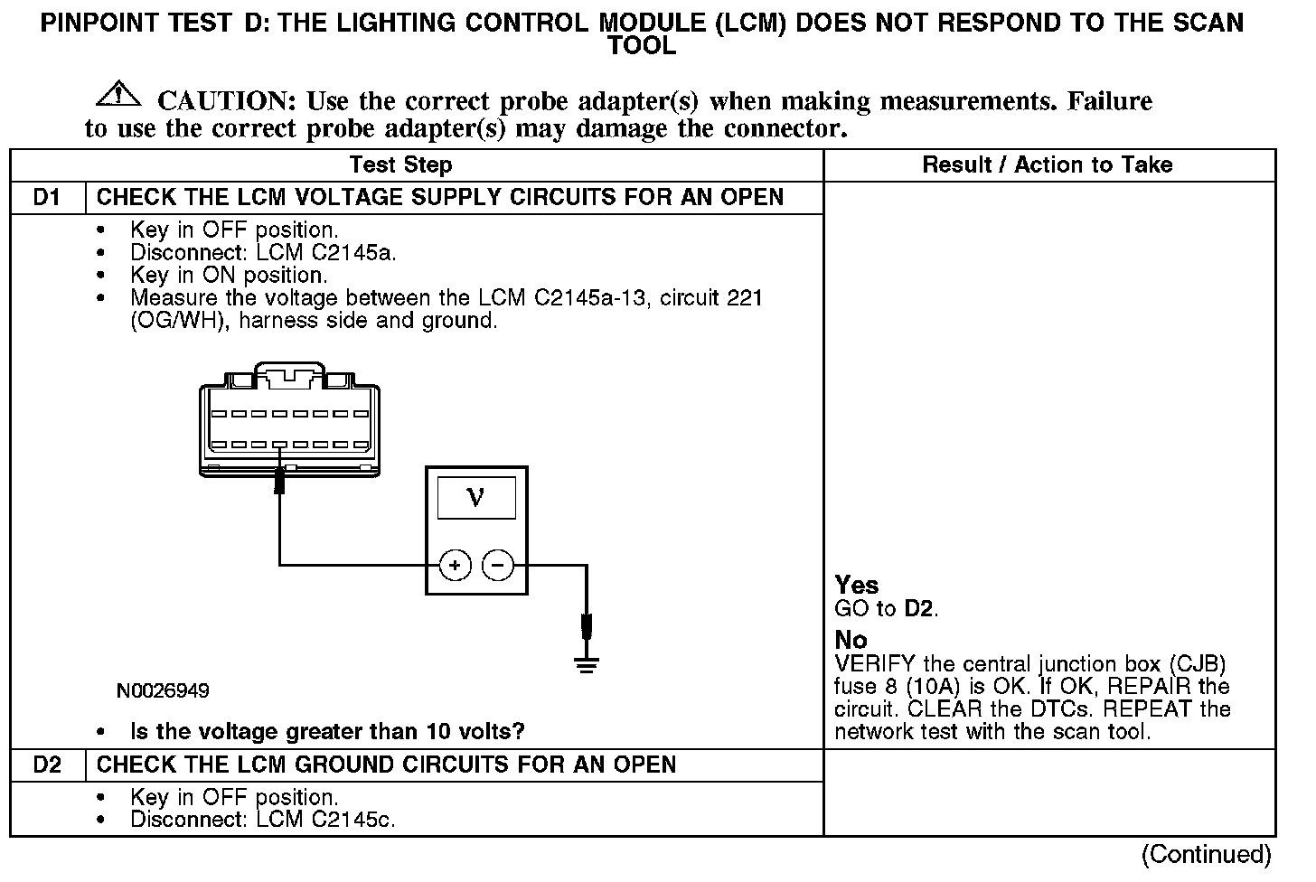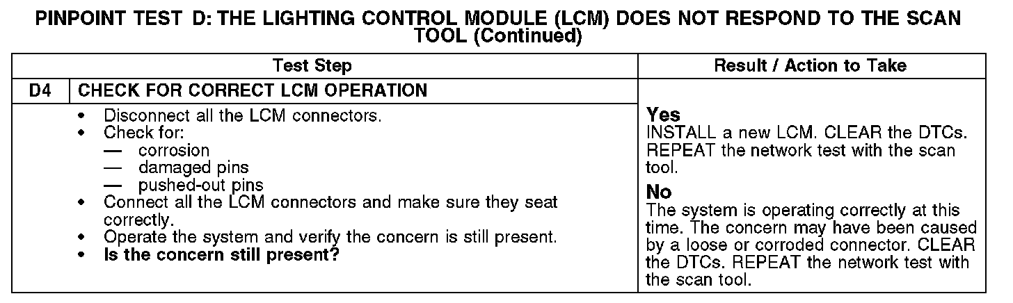 PINPOINT TEST D: THE LIGHTING CONTROL MODULE (LCM) DOES NOT RESPOND TO THE SCAN TOOLD1-D2: