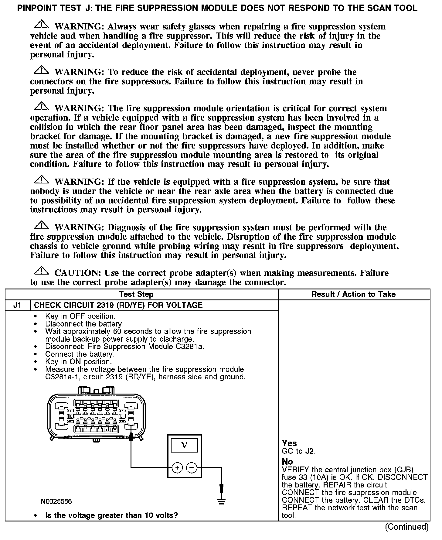 PINPOINT TEST J: THE FIRE SUPPRESSION MODULE DOES NOT RESPOND TO THE SCAN TOOLJ1: