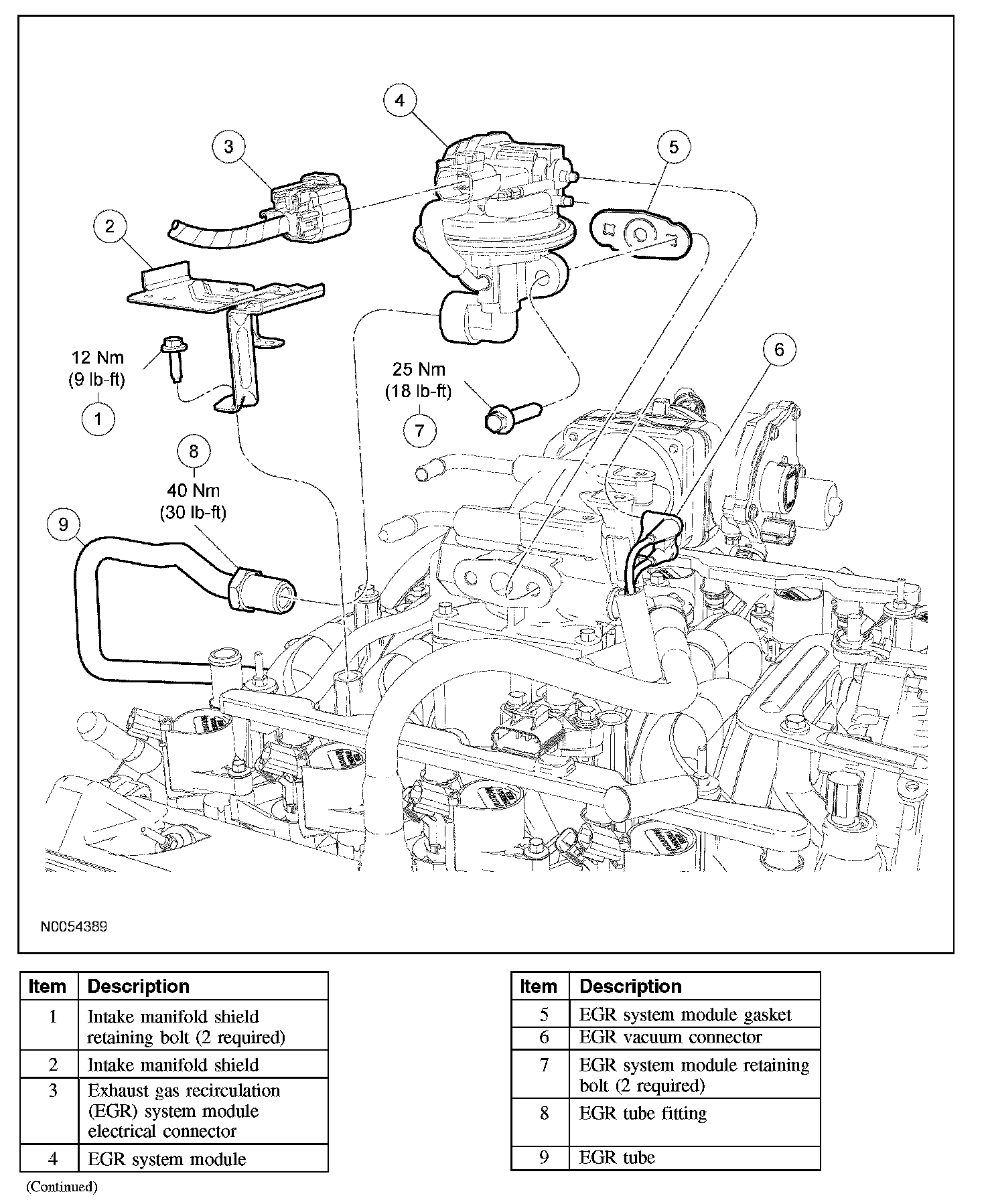 6. CAUTION: Do not use metal scrapers, wire brushes, power abrasive discs or other abrasive means to clean the sealing surfaces. These tools cause scratches and gouges that make leak paths. Use a plastic scraping tool to remove all traces of the EGR system module gasket.