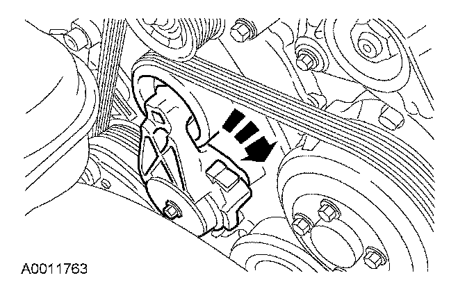 3. Rotate the tensioner and remove the drive belt from the A/C compressor pulley.