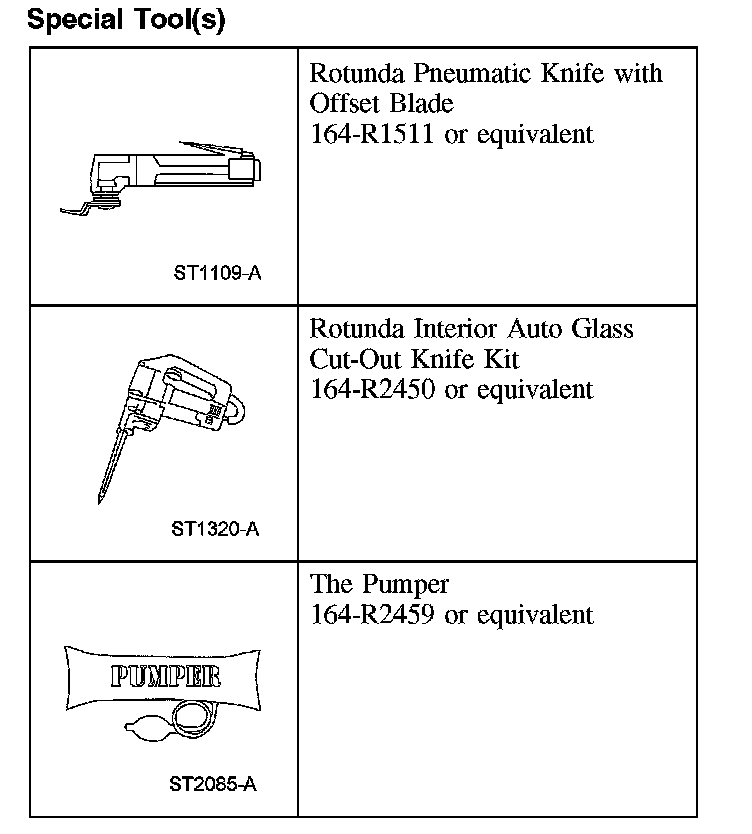 CAUTION: When installing urethane-installed glass parts, the vehicle must not be driven until the urethane has cured. Adequate cure time is specified on the drive away chart for each urethane product as the temperatures and humidity vary. Inadequate or incorrect curing can adversely affect the retention of the windshield.