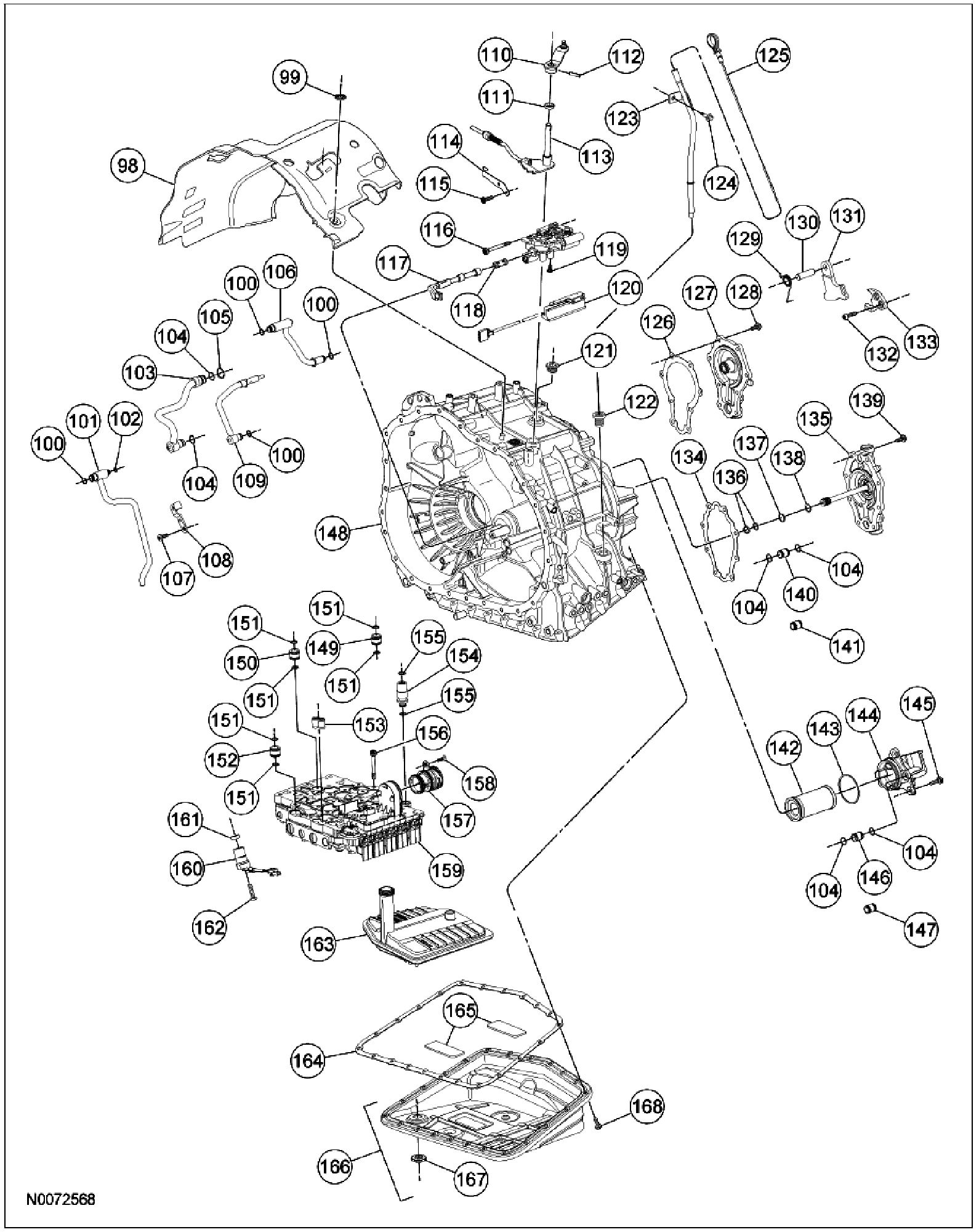 28. NOTE: When installing the range selector valve assembly, make sure that the pin from the manual valve lever is correctly installed into the range selector valve assembly.