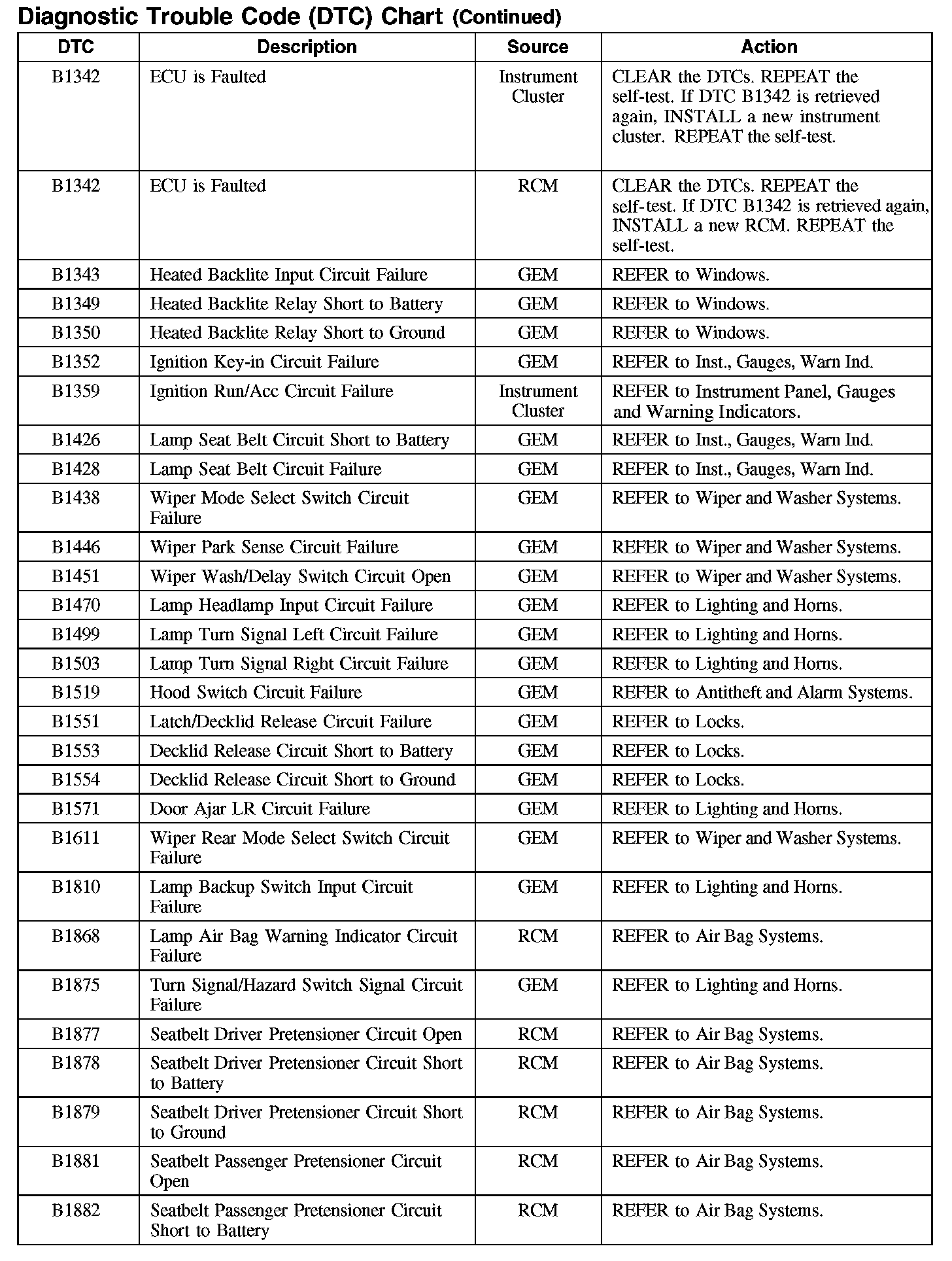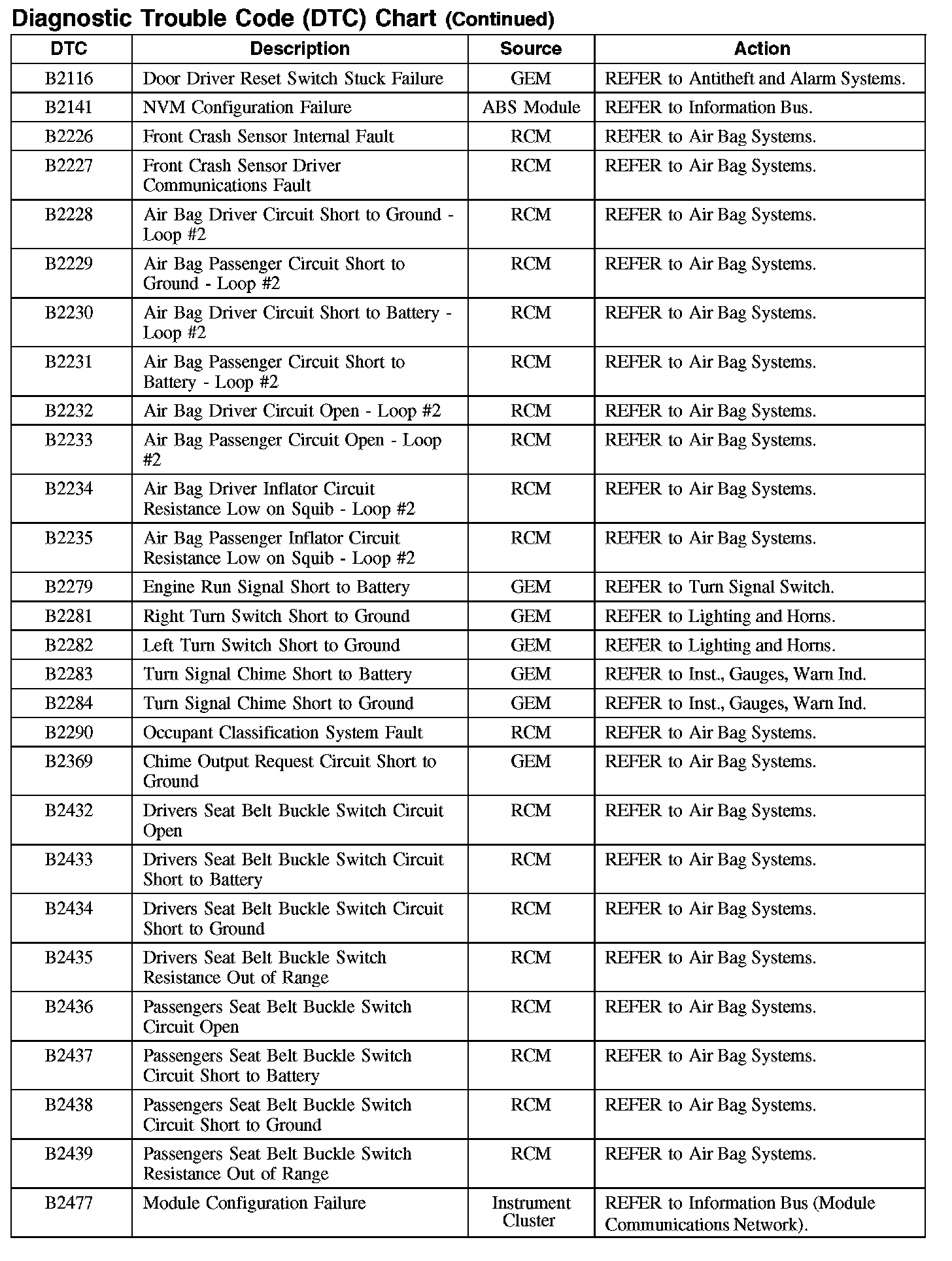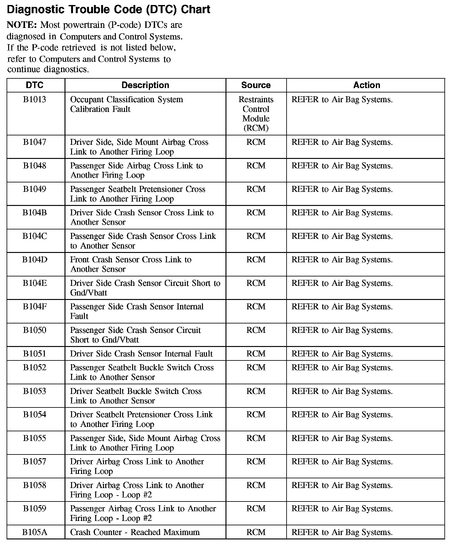 DIAGNOSTIC TROUBLE CODE (DTC) CHART