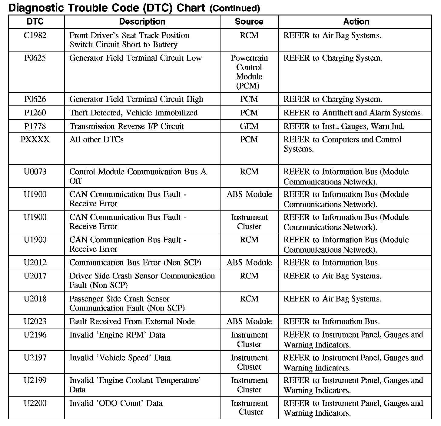 C1982 / P0625-PXXXX / U0073-U2200: