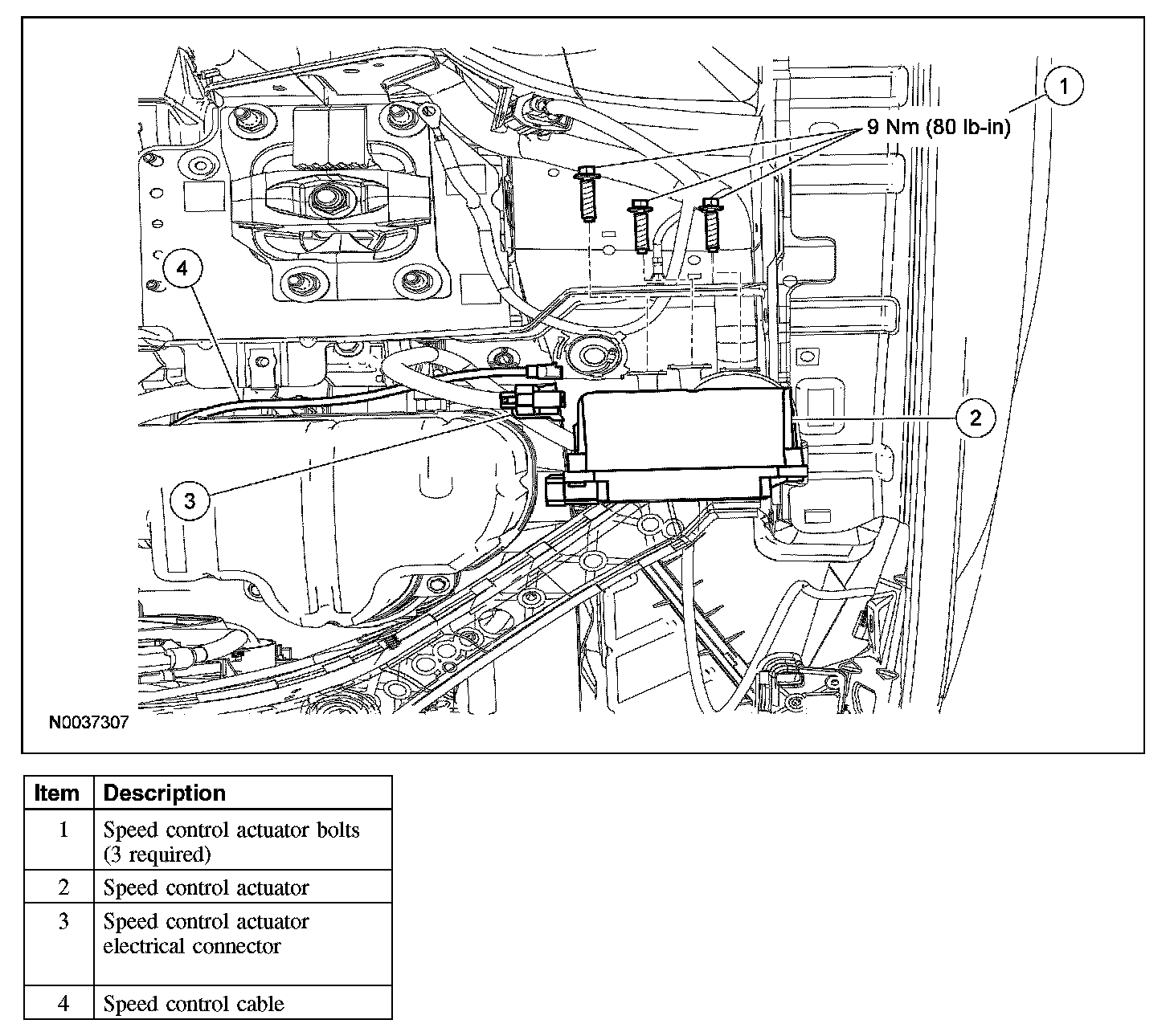 2 Slide the core wire end out of the speed control actuator pulley and disconnect the speed control actuator cable.