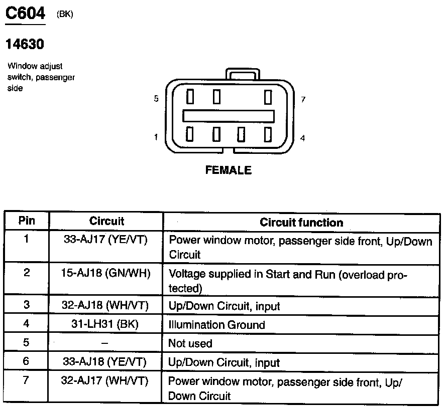 Window Adjust Switch, Passenger Side