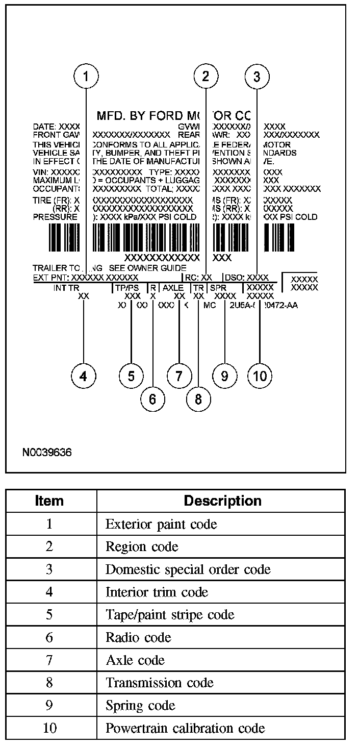Powertrain calibration information is printed in the lower right corner of the vehicle certification (VC) label. Only the base calibration information is printed. Revision levels will not appear, however, they can be found in On Line Automotive Service Information System (OASIS).