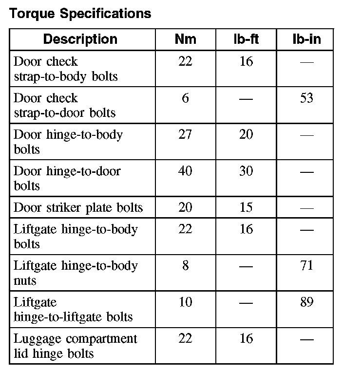 Doors, Hood and Trunk: Specifications