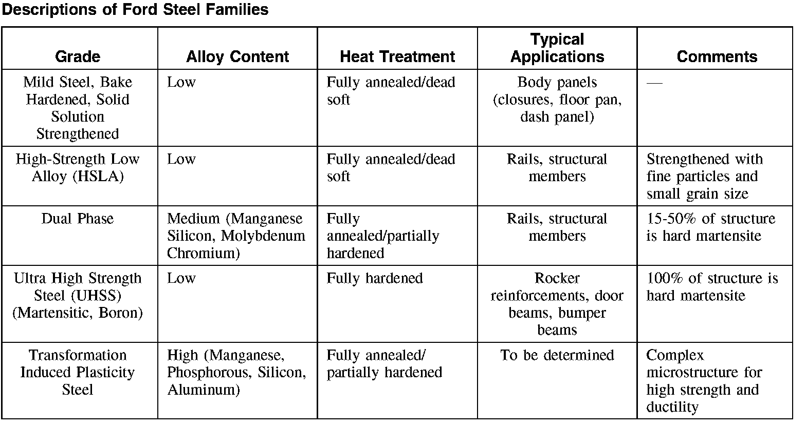 Ford Recommended Steel Repairability Matrix (Part 1):