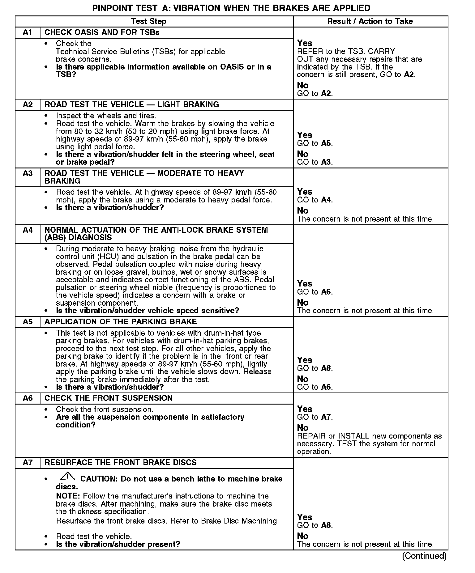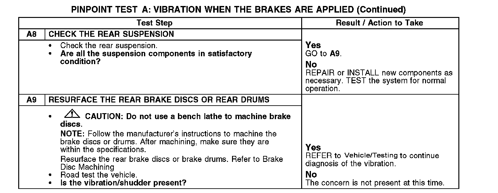 Tests A: Vibration When The Brakes Are AppliedNormal Operation