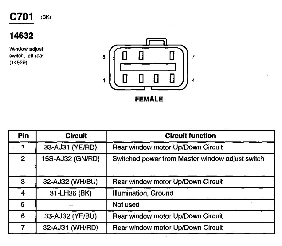 Window Adjust Switch, Left Rear