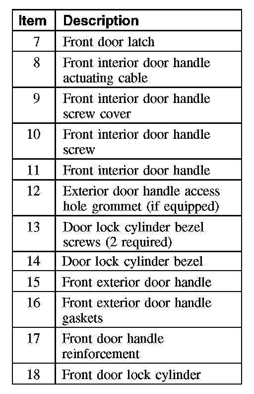 Front Door Handles, Locks and Latches - Exploded View