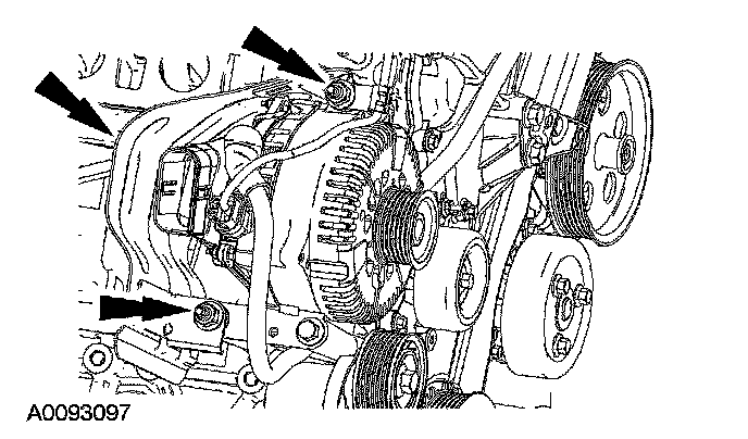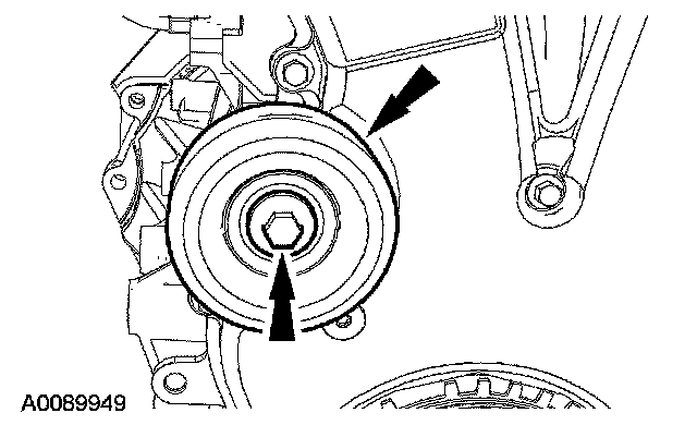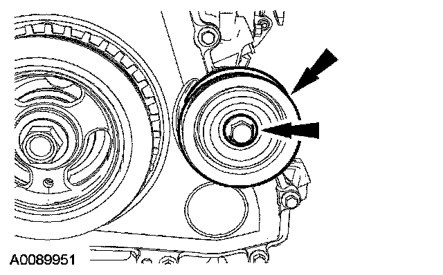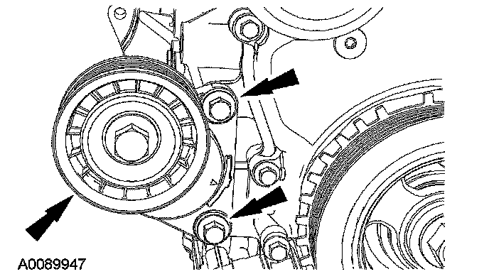 129. Install the accessory drivebelt tensioner and 2 bolts.