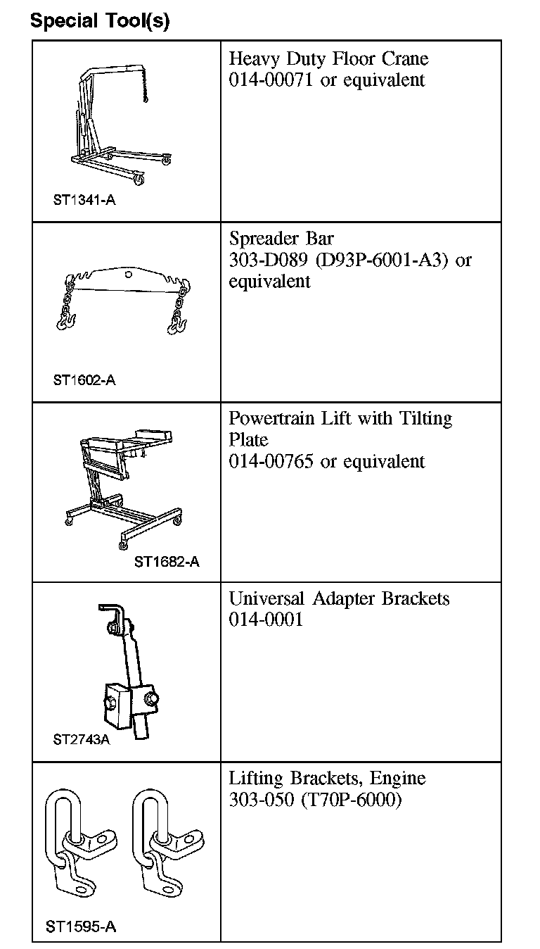 4. Using the special tools, raise the engine and transaxle assembly onto the lift table.