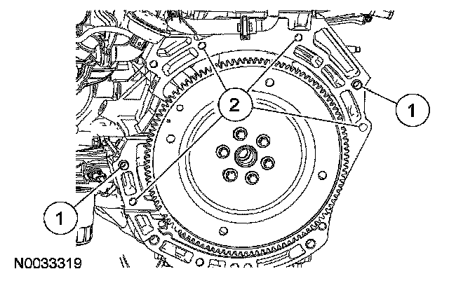 9. NOTE: If new parts are not being used, be sure to align the marks on the flexplate and the stud made during engine removal.