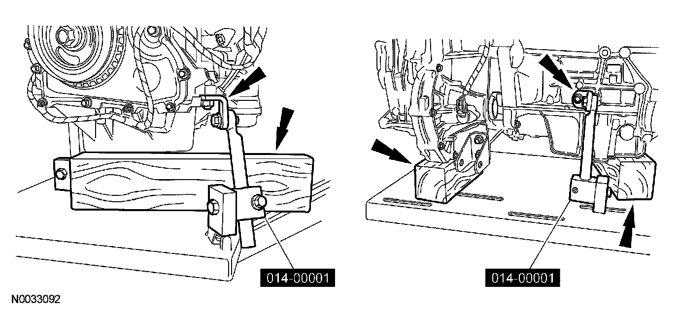 5. Using the special tools, secure the engine and transaxle assembly to the lift table.