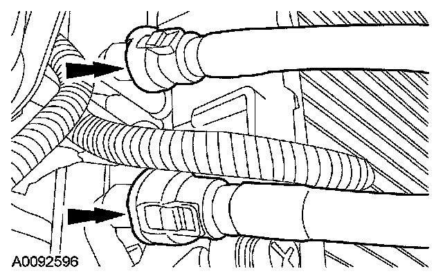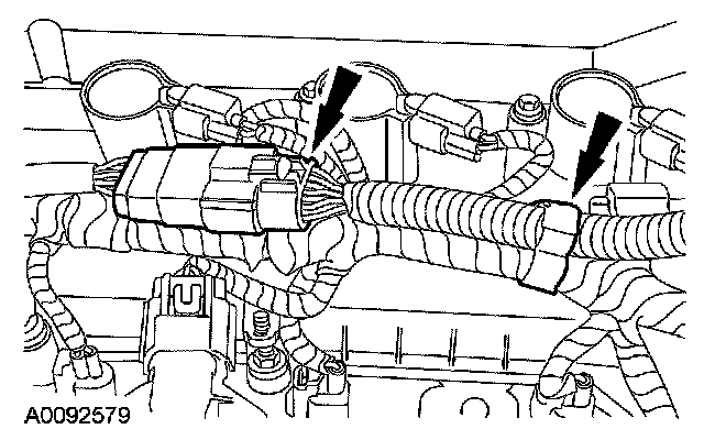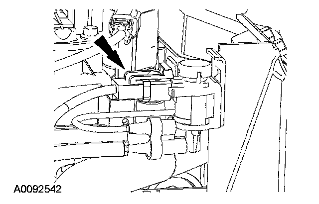 55. Connect the upper radiator hose, the heater hose and the coolant vent hose to the coolant bypass.