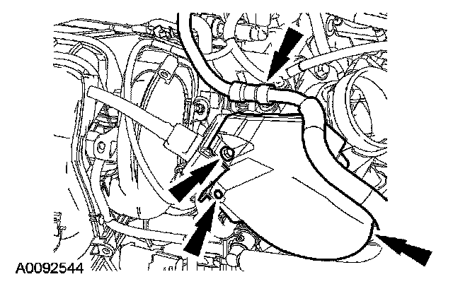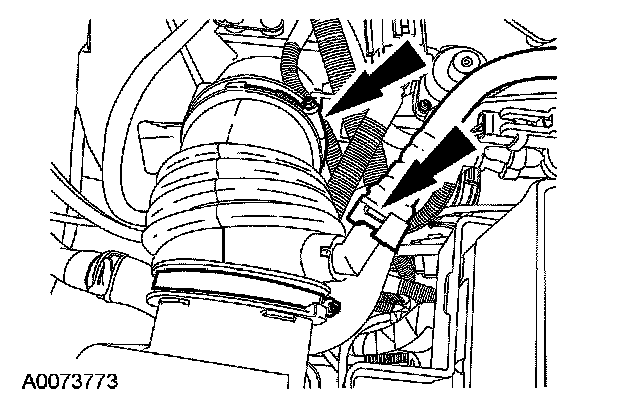64. Install the air cleaner outlet pipe and air intake resonator into the grommets and install the bolt.