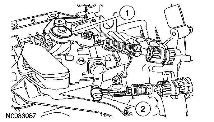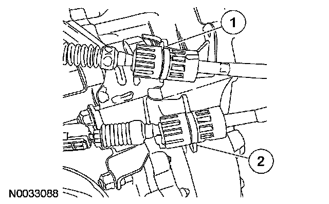 1 Detach the shifter cable from the retaining bracket, turning the abutment sleeves counterclockwise.