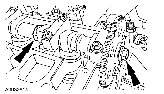 If the camshaft sprockets were not removed, use the flats on the camshafts to prevent camshaft rotation and loosen the sprocket bolts.