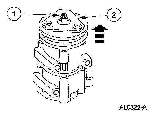 1 Thread an 8 x 1.25 mm bolt into the A/C clutch disc and hub to force it from the compressor shaft.