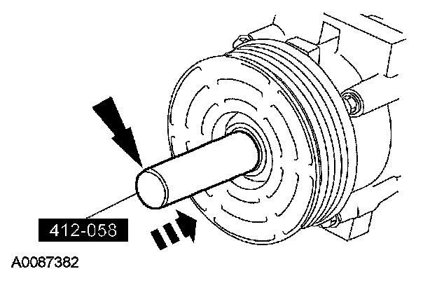 4. Push the shaft seal onto the A/C compressor shaft with the special tool until seated.