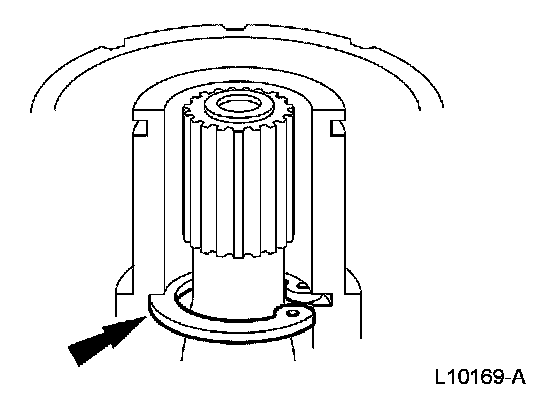 8. Pull the special tool up quickly while keeping the tool shaft against the side of the nose opening and remove the snap ring.