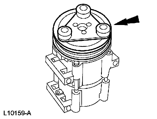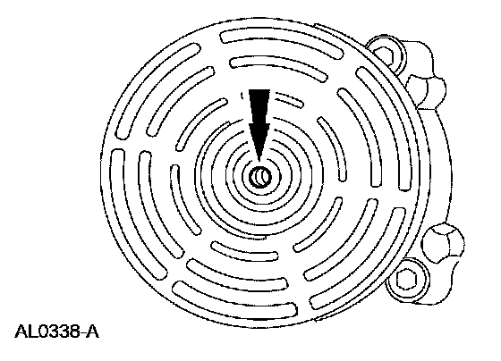 9. Measure and adjust the clutch air gap by removing or adding A/C clutch disc and hub spacers.