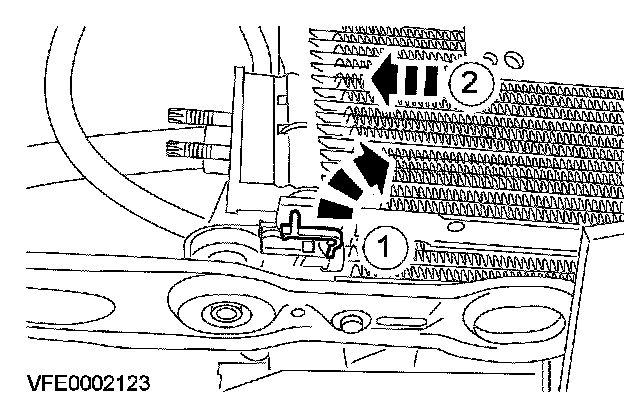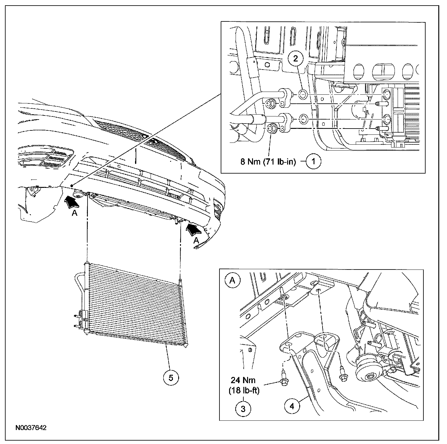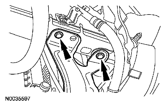 5. CAUTION: Support the radiator crossmember using a transmission jack or similar.