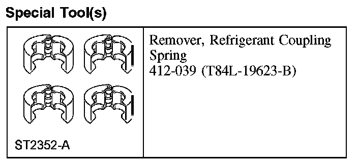 3. CAUTION: Do not use a screwdriver or similar tool to remove the A/C tube lock coupling spring; this can cause axial scratches across the O-ring seal grooves resulting in refrigerant leaks.